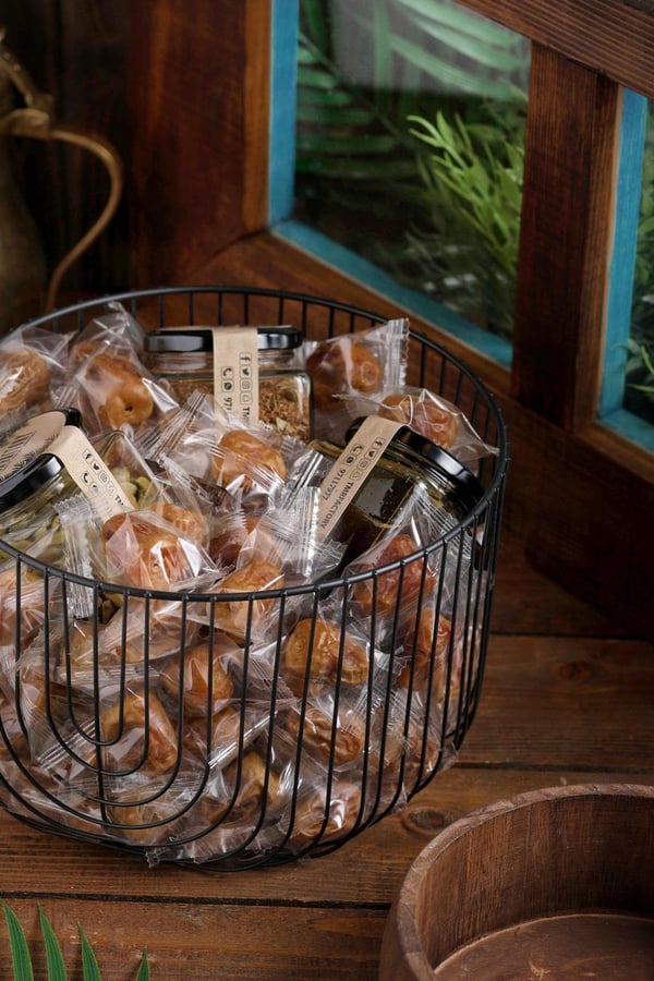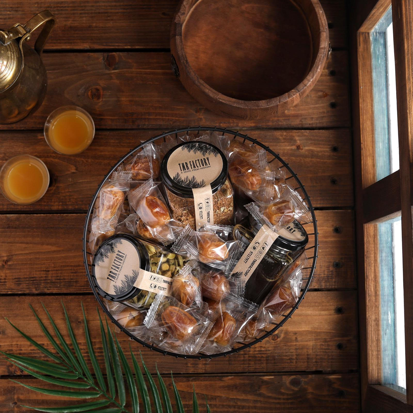 Neqsa contains a kilo and a half of wrapped sukary dates served with Arabic coffee, cardamom and natural date molasses.